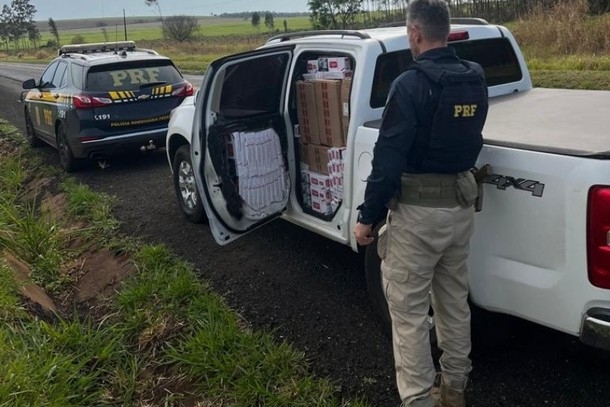 Uma caminhonete carregada com mercadoria contrabandeada do Paraguai foi apreendida na manhã desta quinta-feira (31), em Nova Esperança. De acordo com a Polícia Rodoviária Federal (PRF), o veículo estaria vindo de Terra Roxa com destino a Presidente Prudente/SP.